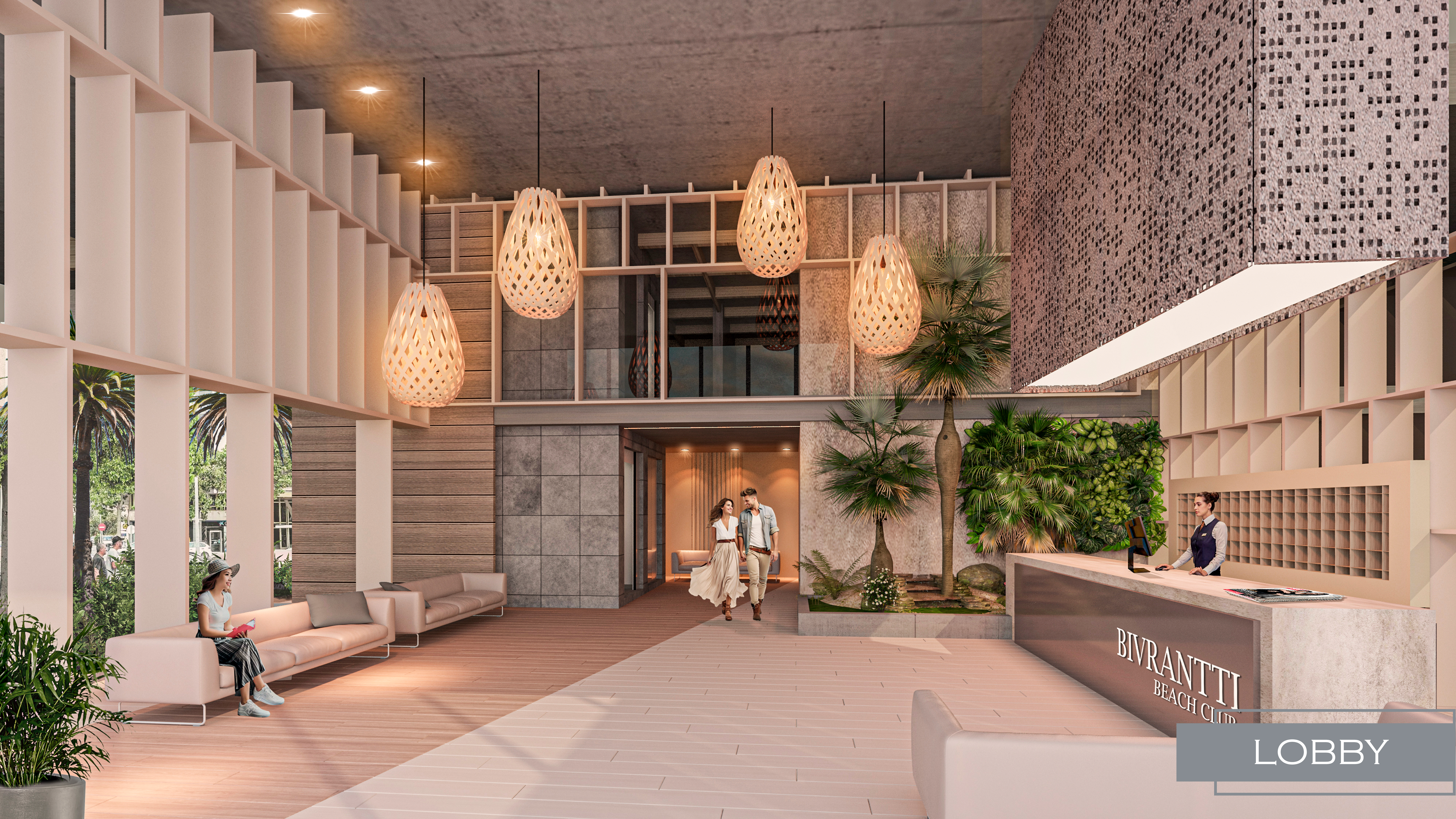 Bivrantti Beach Club es una moderna torre de 19 pisos, con 128 apartamentos de 1 y 2 alcobas, que van desde 42,50 m² hasta 63,50 m².